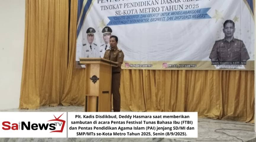 Metro – Wali Kota Metro, Bambang Iman Santoso, secara resmi membuka Pentas Festival Tunas Bahasa Ibu (FTBI) dan Pentas Pendidikan Agama Islam (PAI) jenjang SD/MI dan SMP/MTs se-Kota Metro Tahun 2025. Acara tersebut berlangsung meriah dengan dihadiri para siswa, guru, dan stakeholder pendidikan di Kota Metro.